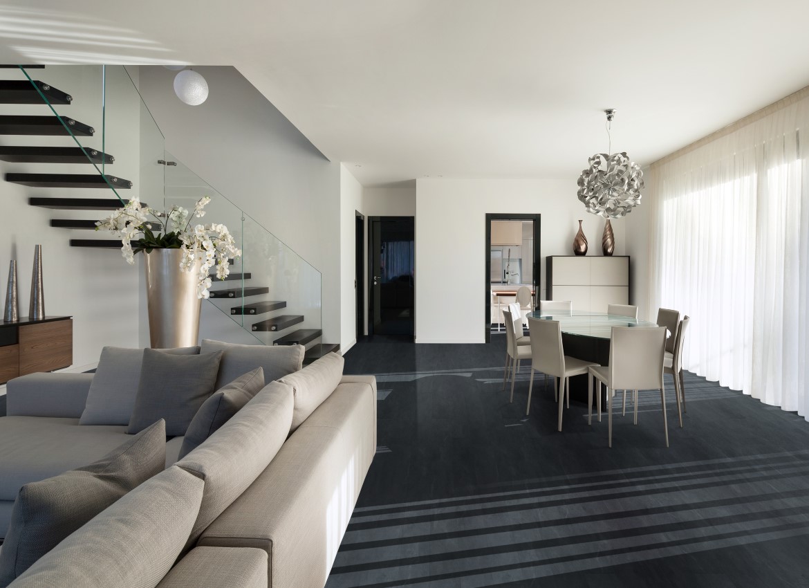 Mooie collectie pvc-vloeren van Gelasta. Heeft een zwarte kleur (Slate Black). Deze vloer is verkrijgbaar in twaalf hout decoren en twee tegelmotieven.