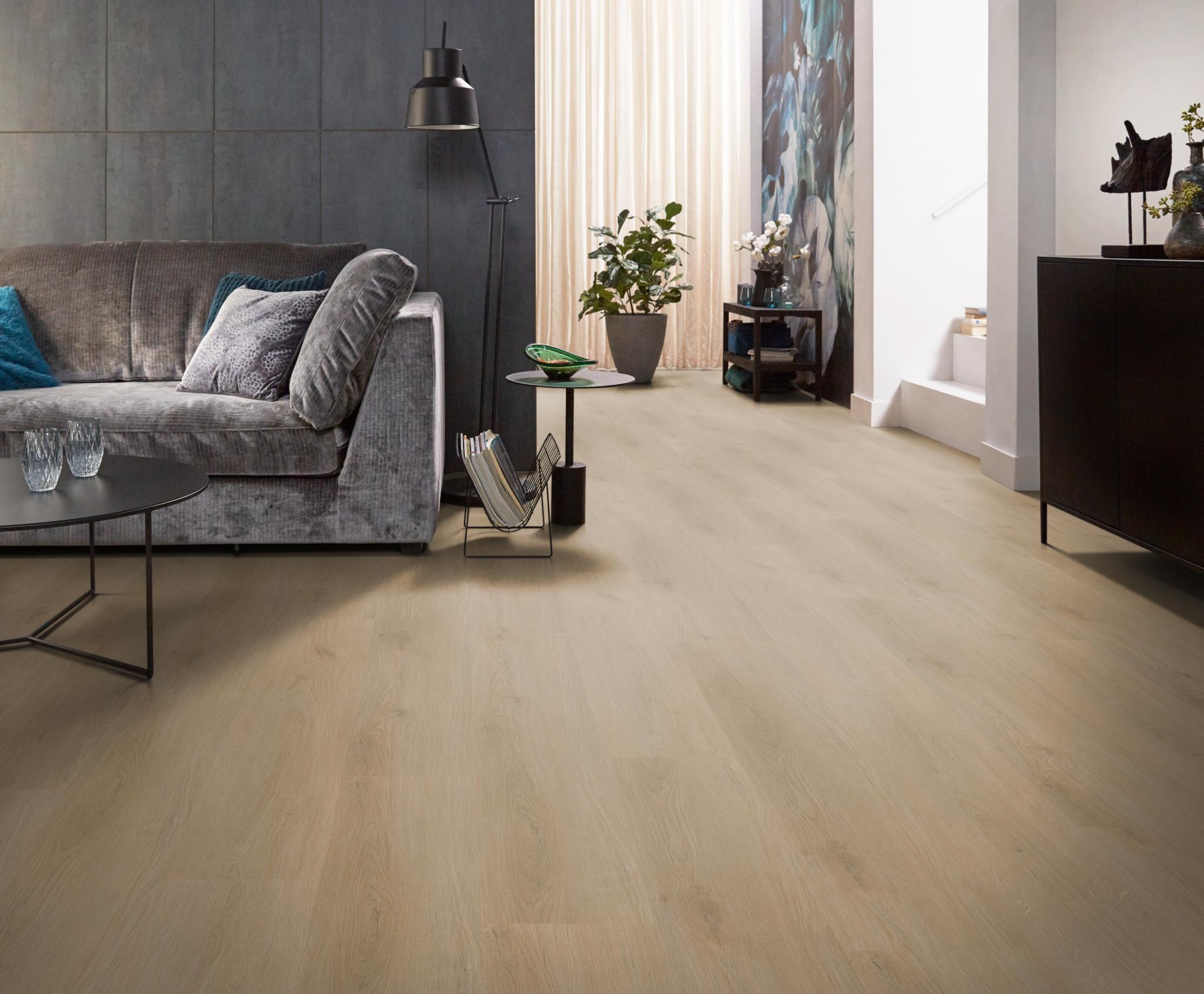 De Navaro dryback Natural Oak Ambiant heeft een dikte van 2.5 mm, een toplaag van 0.55 mm en een 4V groef. Deze pvc vloer is verkrijgbaar in vier kleuren: Beige, Dark Oak, Natural Oak en Light Oak.