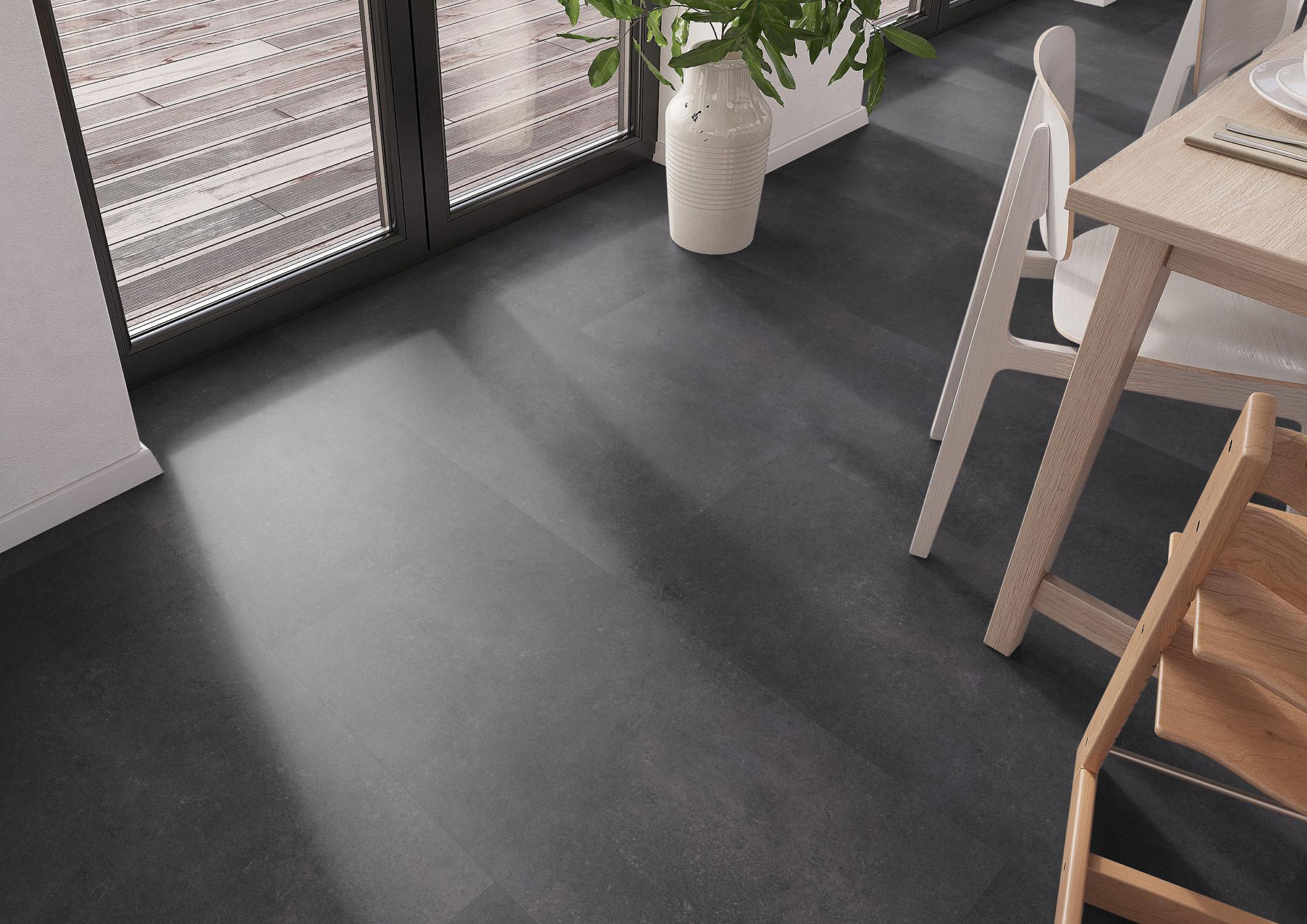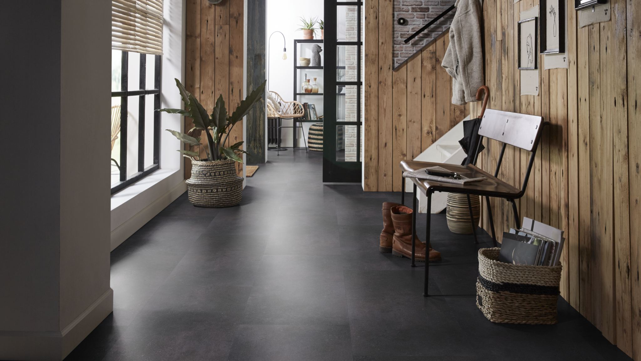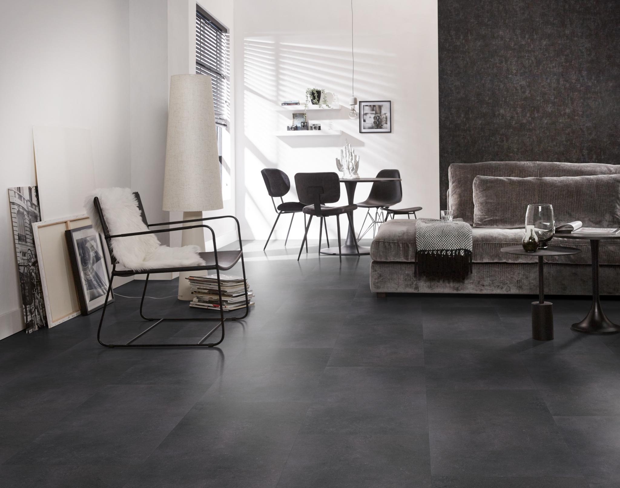De Sarino dryback Anthracite Ambiant Ambiant heeft een dikte van 2.5 mm, een toplaag van 0.55 mm en een 4V groef. Deze pvc vloer is verkrijgbaar in vier kleuren: Anthracite, Dark Grey, Grey en Light Grey.