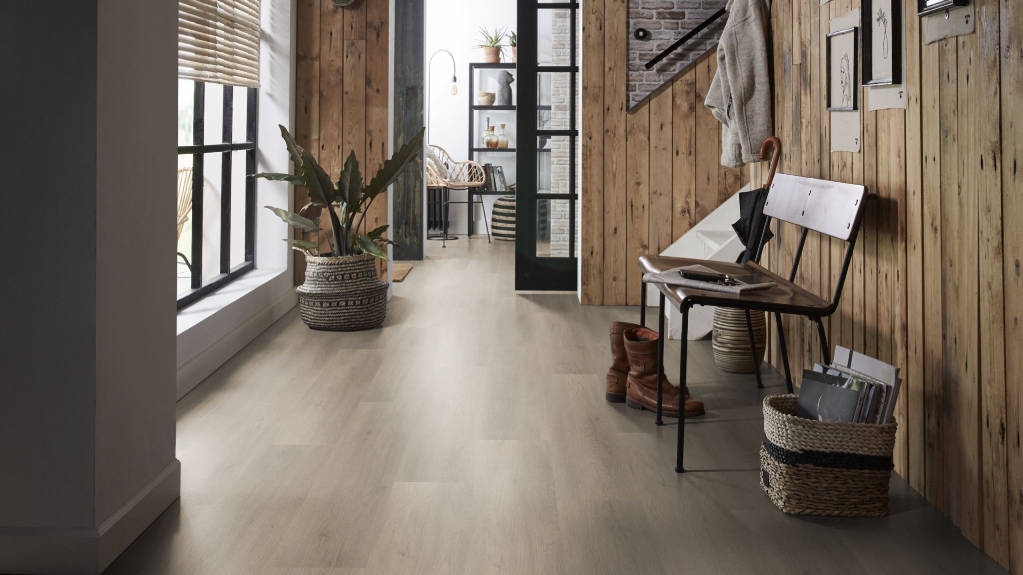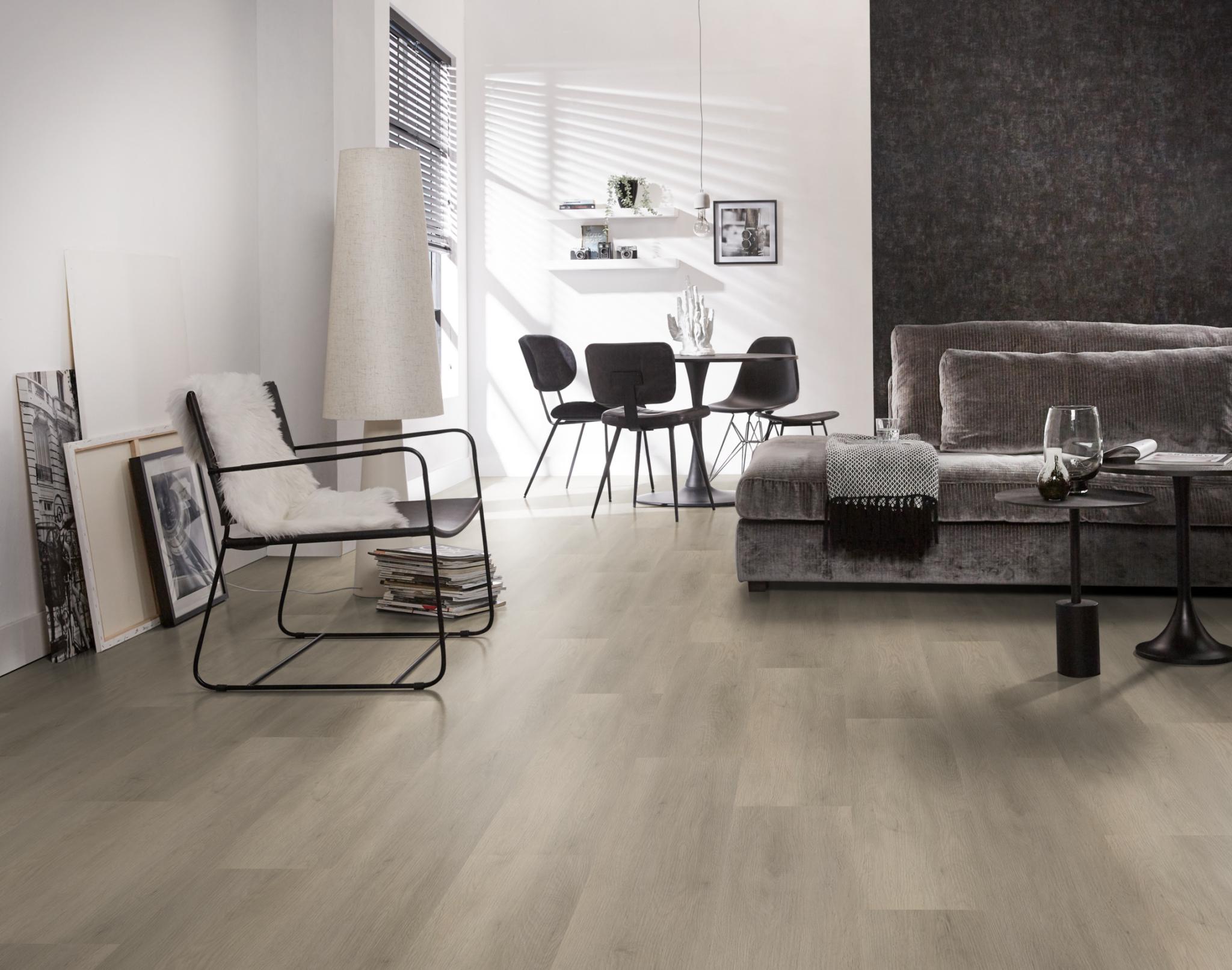 De Sentima dryback Smoky Ambiant heeft een dikte van 2 mm, een toplaag van 0.3 mm en een 4V groef. Deze pvc vloer is verkrijgbaar in vier natuurlijke kleuren: Beige, Dark Oak, Natural Oak en Smoky.