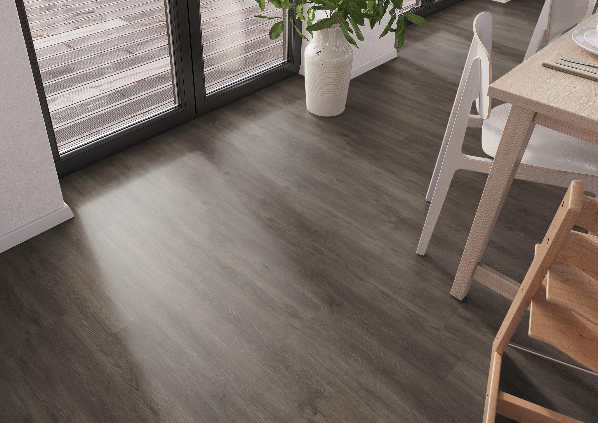 De Ambiant Supremo Grey heeft een dikte van 2.5 mm, een toplaag van 0.55 mm en een 2V groef. Deze pvc vloer is verkrijgbaar in de kleuren Natural Oak, Grey, Dark Grey en Light Grey.
